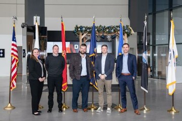 Pictured are Leeper; Geremy Freifeld, technology portfolio leader and Laboratory Fellow, Draper; Kay; Harr; and Andrew Mueller, Secure and Assured Systems business area lead, Draper.